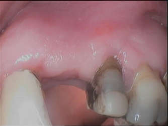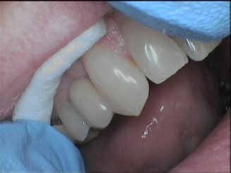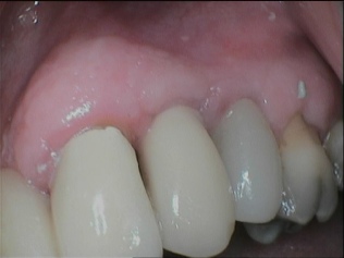 MARYLAND BRIDGE FROM INSIDE MOUTH. METAL WINGS HOLDING FALSE TOOTH. PERMANENTLY FIXED IN PLACE.